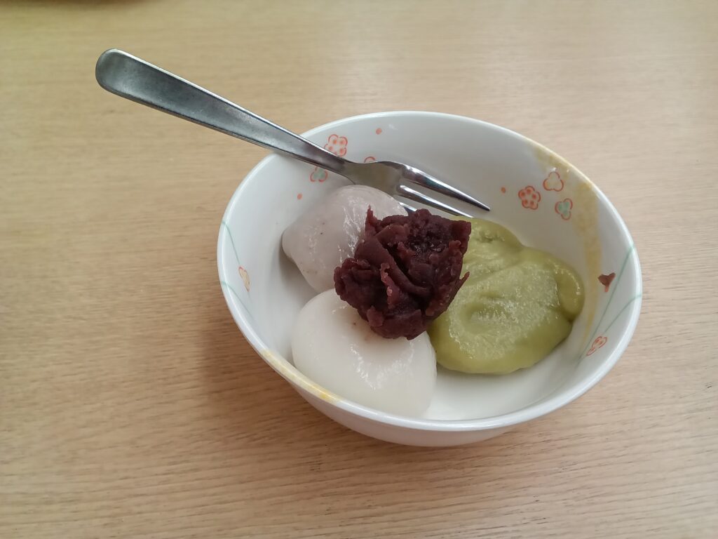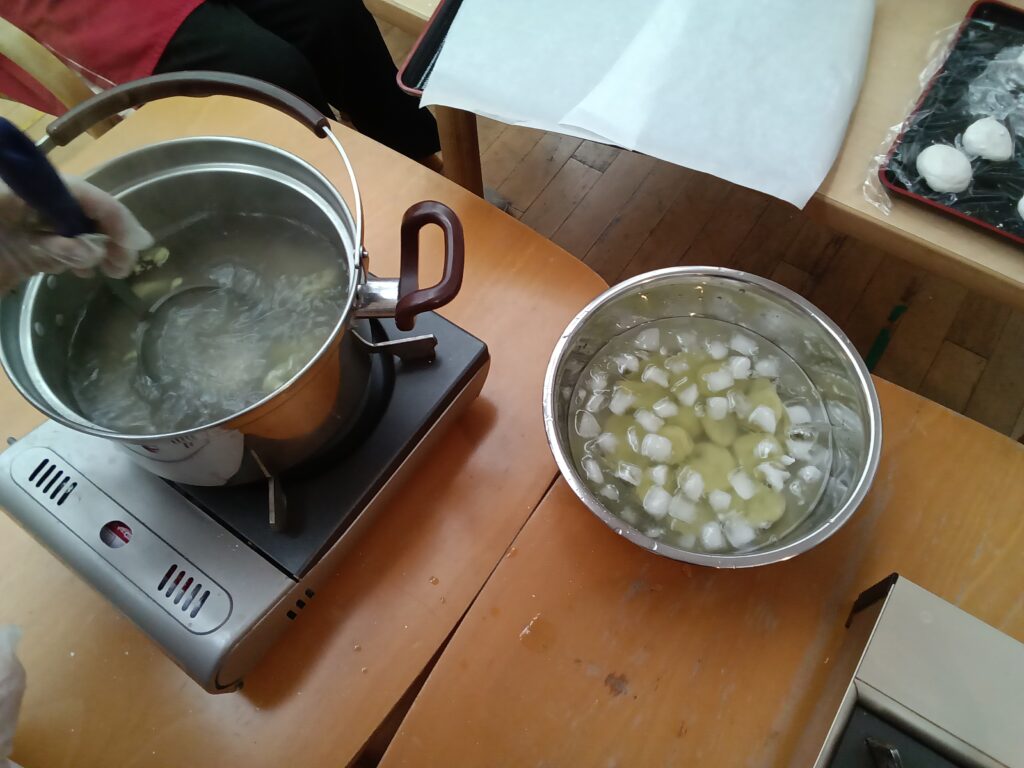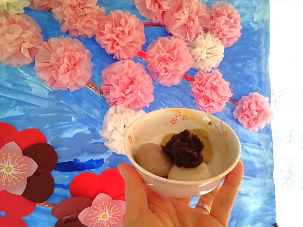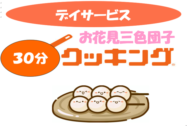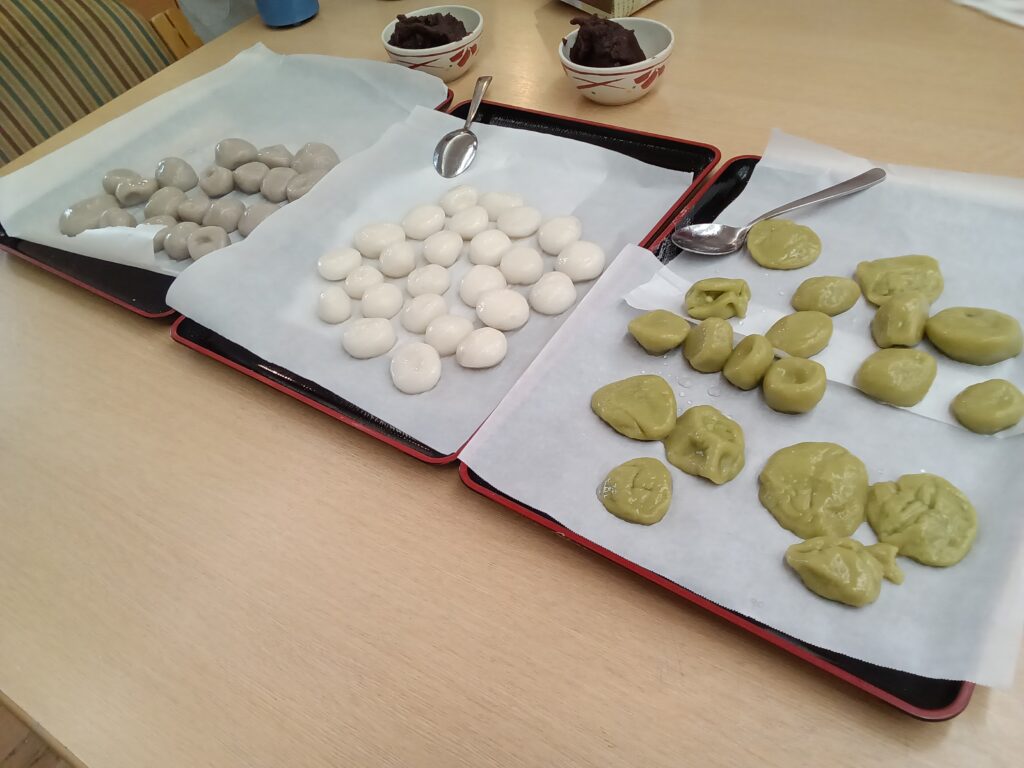 そしてお桜見もいいですが、皆さん『花より団子』という事で、前回30分クッキングで白玉作りがとても美味しいと好評でしたので、今回はさらにアレンジして、三色団子作りをしました。