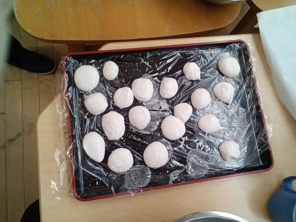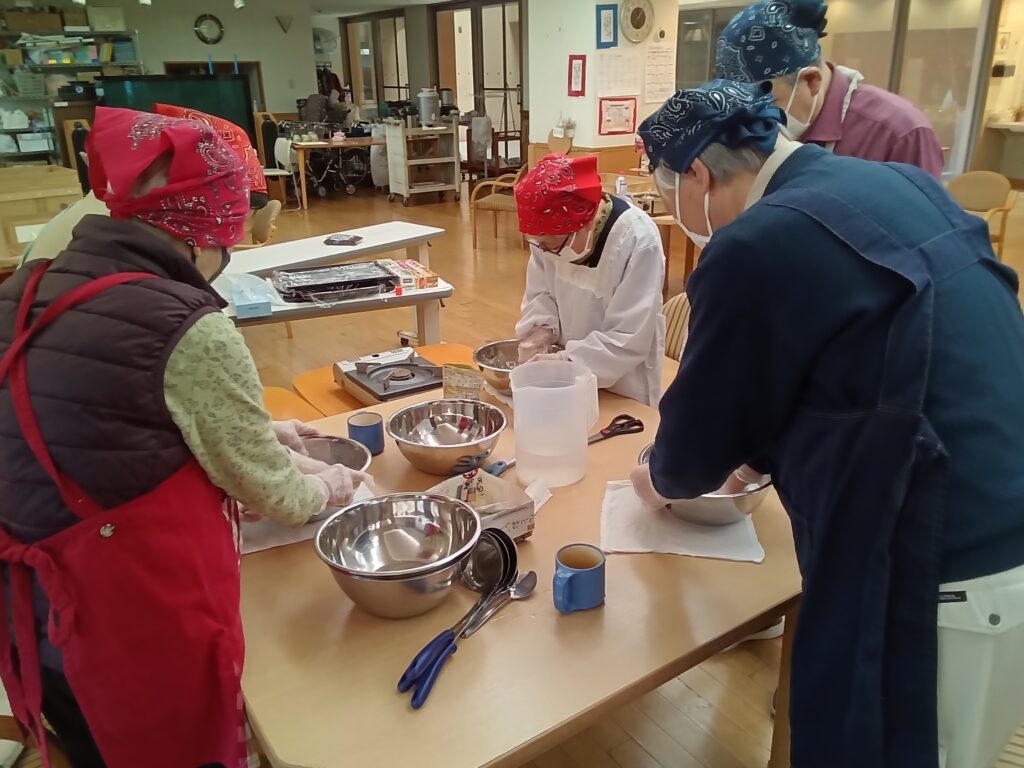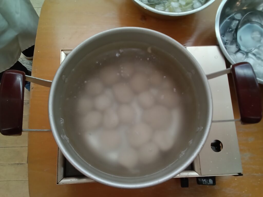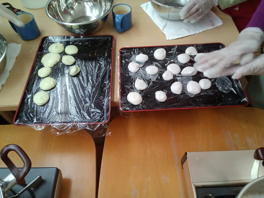 そしてお桜見もいいですが、皆さん『花より団子』という事で、前回30分クッキングで白玉作りがとても美味しいと好評でしたので、今回はさらにアレンジして、三色団子作りをしました。
