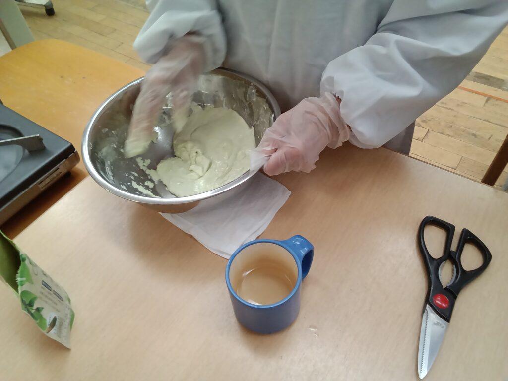 まずは違う色の白玉粉を水で溶かしよーく混ぜていきます。