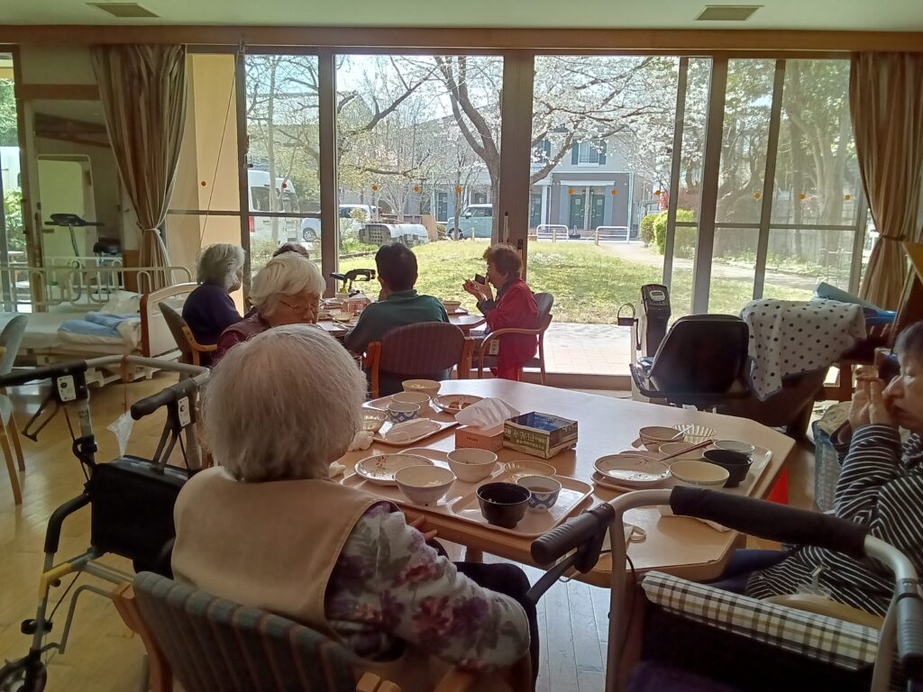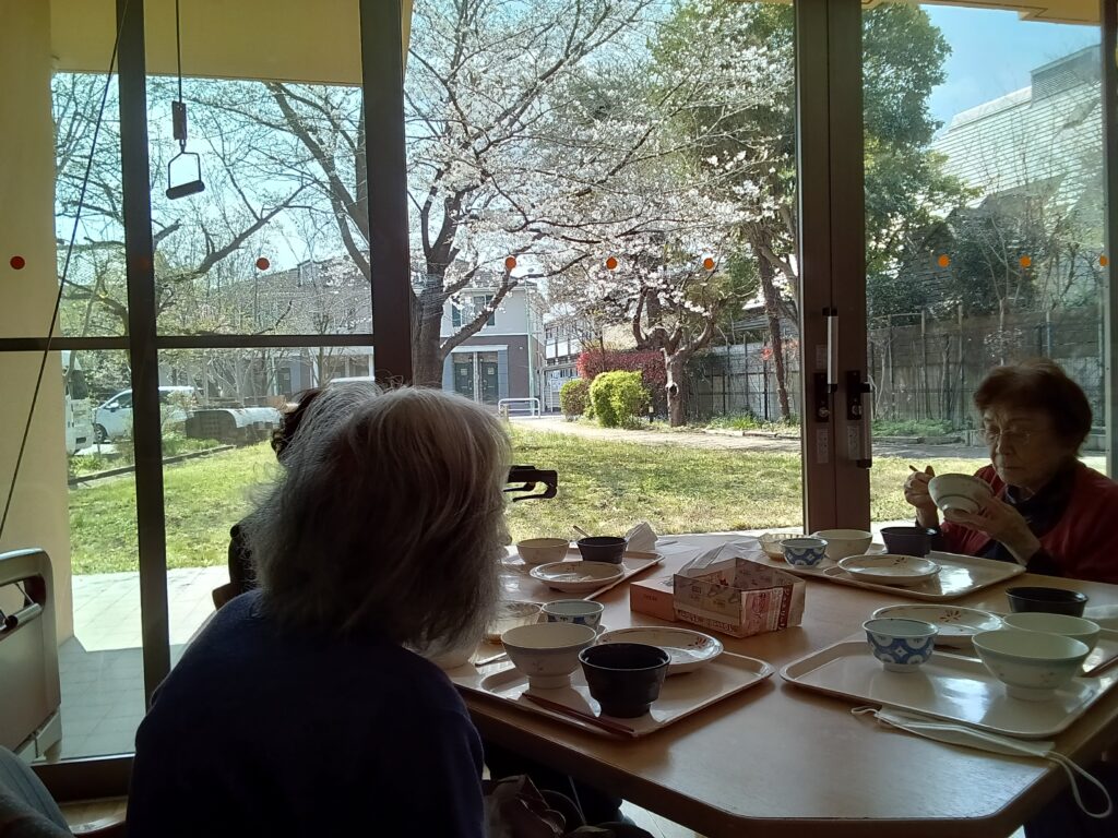 満開の時期はあっという間に過ぎてしまうので、早速桜を見ながら昼食を召し上がって頂きました。