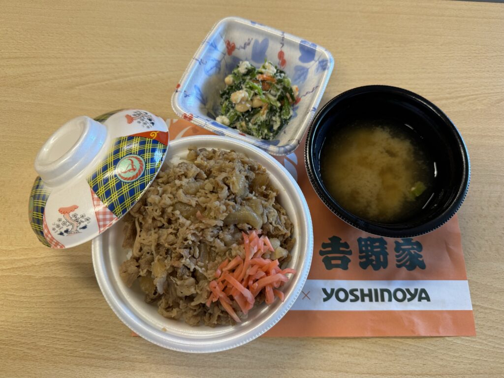 人気メニューの1つ 吉野家の牛丼!!完食される方が多いです✨小食で普段あまり完食することがない方も「今日は全部食べられそう☺️」と。