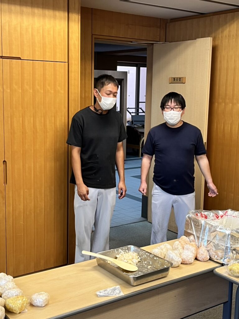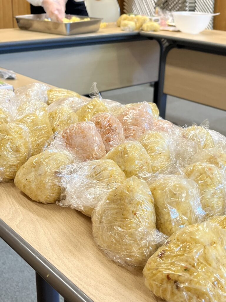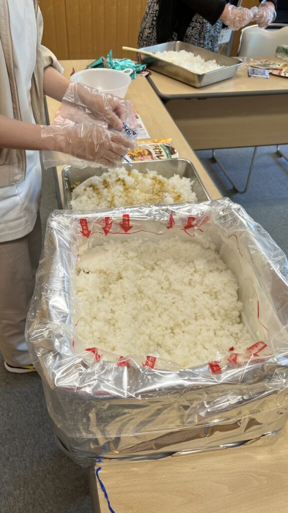数時間後、何とか滑り台の掃除を終えて施設の中に戻ると大量のおにぎりが作られておりました🍙