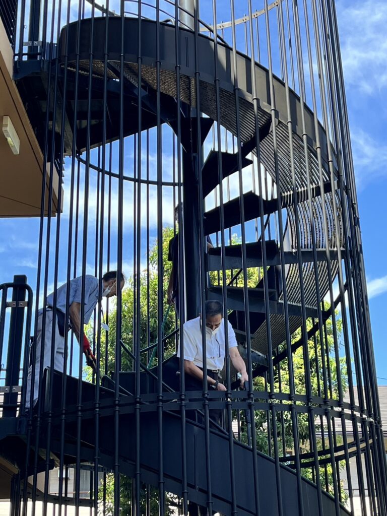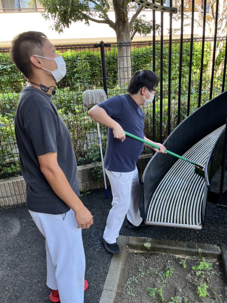 今回行ったのは 避難用滑り台の掃除とアルファ米の炊き出し訓練です。