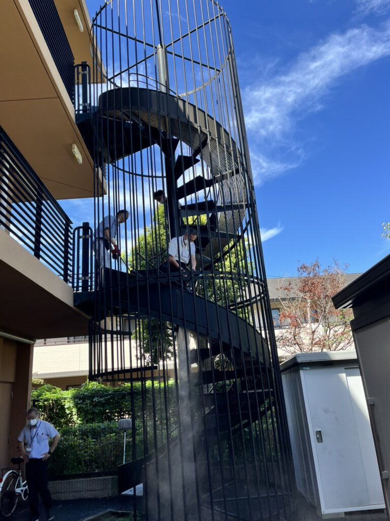 災害時に避難用滑り台の汚れが酷くて全然すべらなーい💦💦そんな状況に