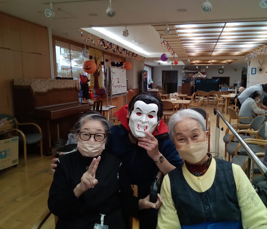余談ですが、ハロウィンの日以降職員の怖い仮装が忘れられず、デイサービスに来る度に来年は怖い衣装ではなく、かわいい衣装にしてね💃!! と言われました😅