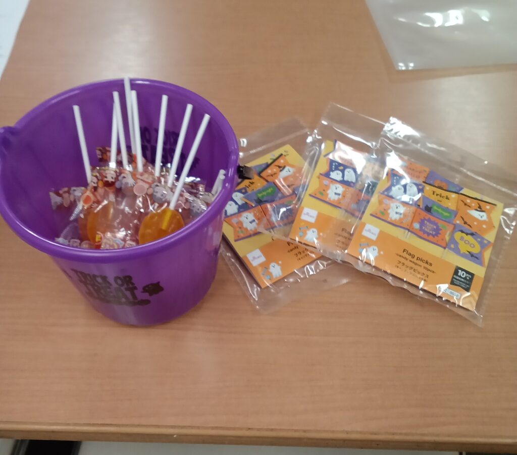 職員もハロウィンの仮装をして、皆さんに楽しんでもらいました!!いつもと違い怖い顔という事もあり、あまり近くによる事なく皆さん職員から距離をとっていました😂