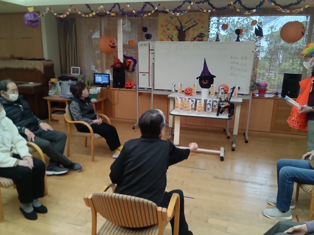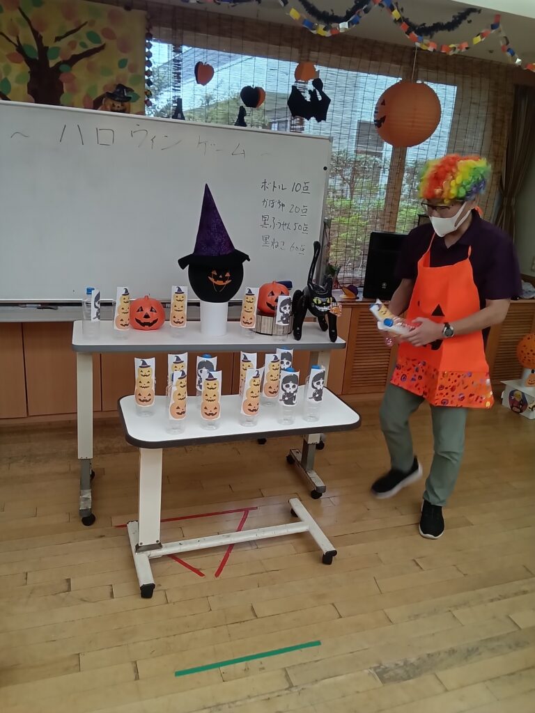 ハロウィンにちなんだゲームも行い的を倒すと景品がもらえる為、皆さん前かがみになり必死に的に当てようとしていました🤾