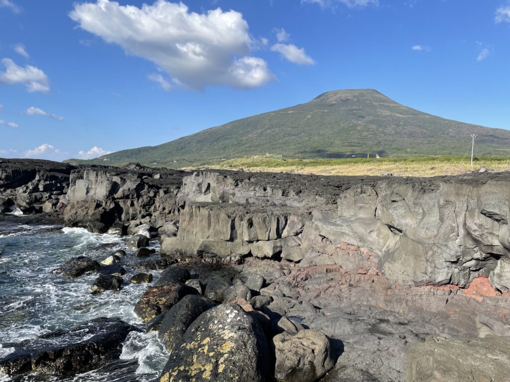 南原千畳岩海岸は溶岩が冷え固まって地面に広がっている珍しい光景に、海、山が見渡せる素晴らしい景色でした。