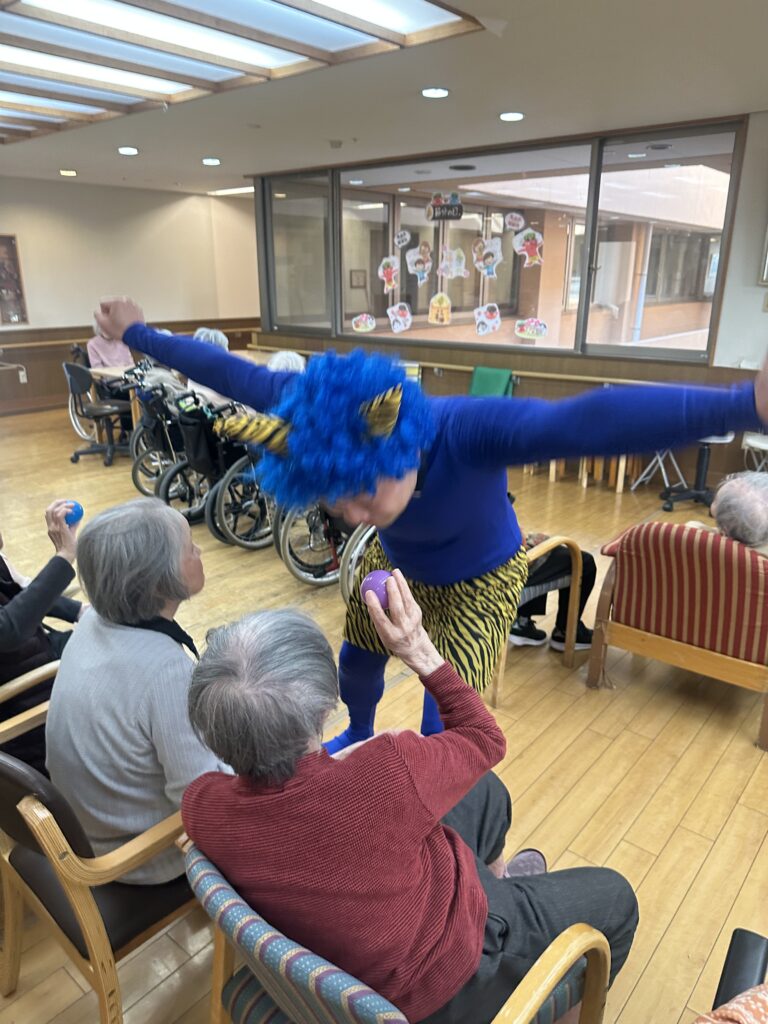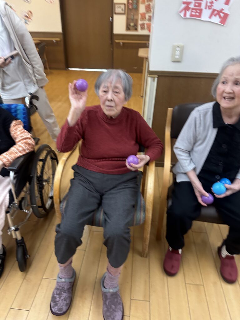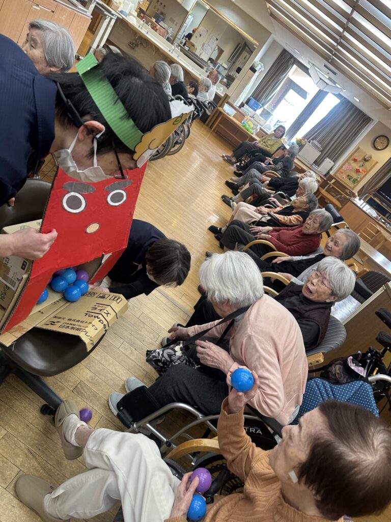 みんなで鬼になってしまった職員に「鬼は外」とボールを当てて盛り上がりました!!