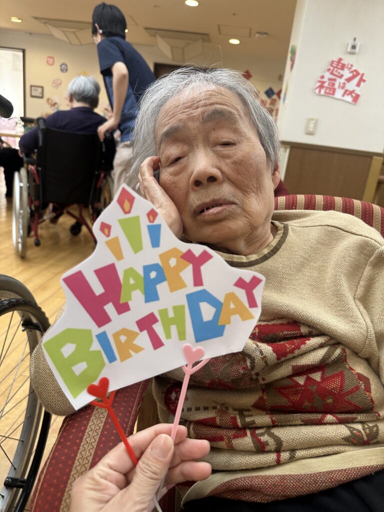 鬼退治した後は、みんなで1月と2月の誕生日の利用者さんのお祝いをしました♪