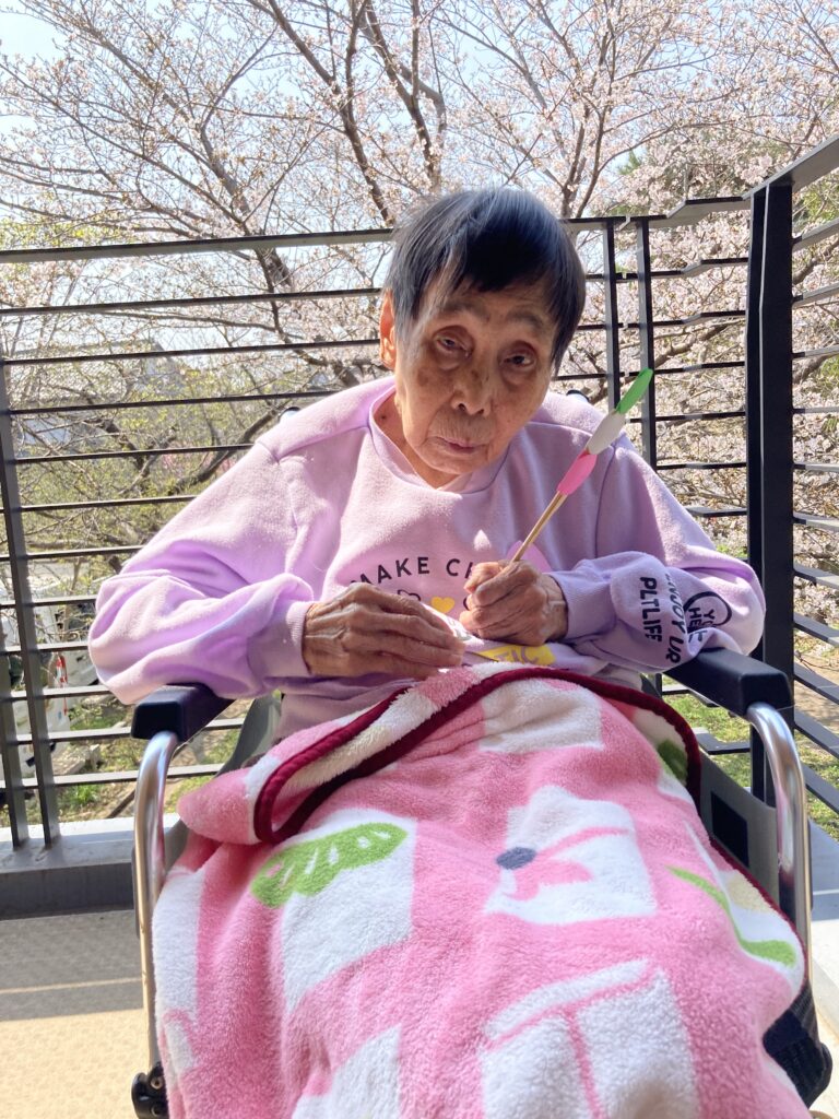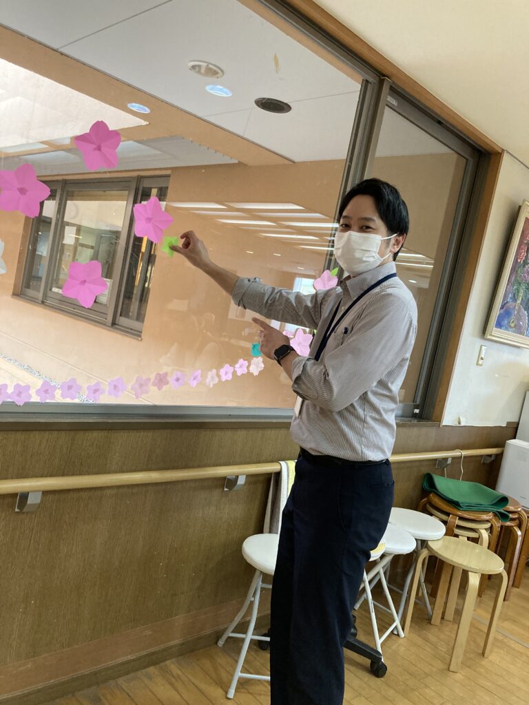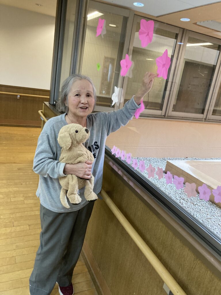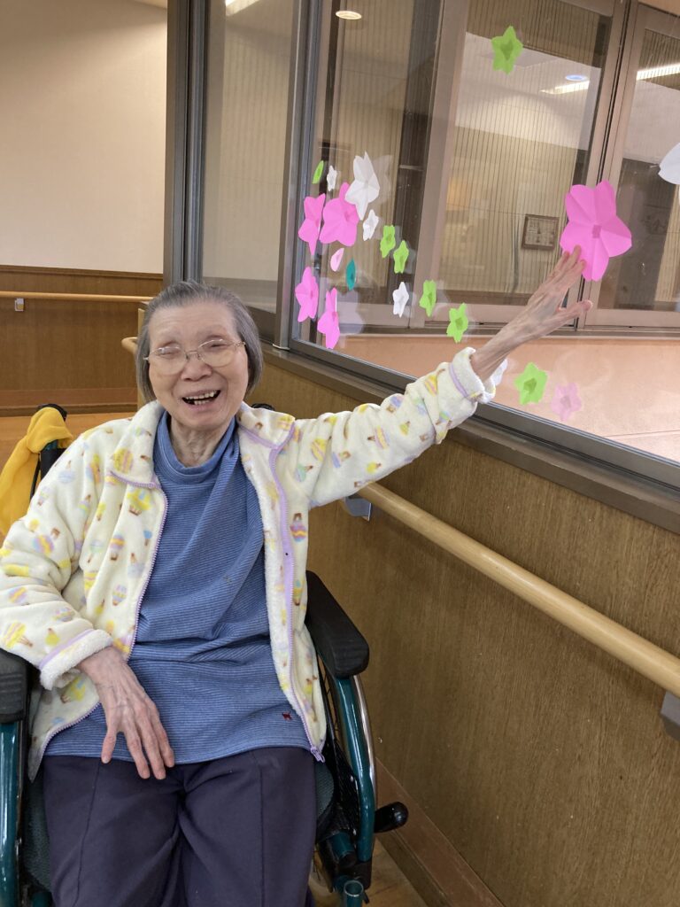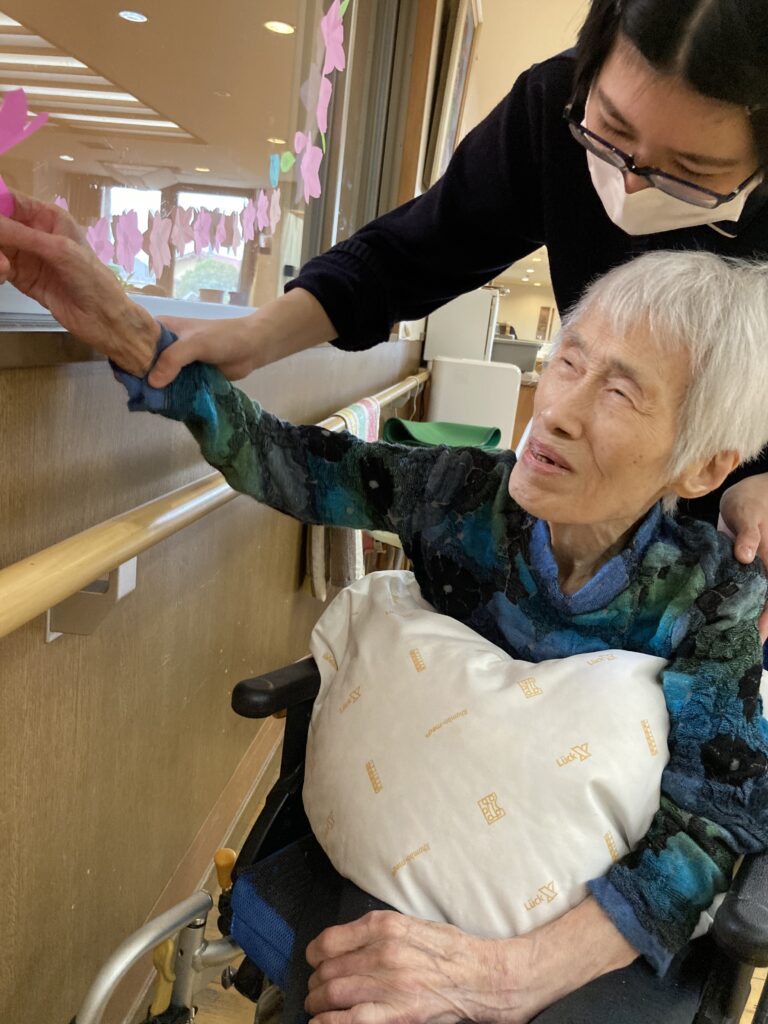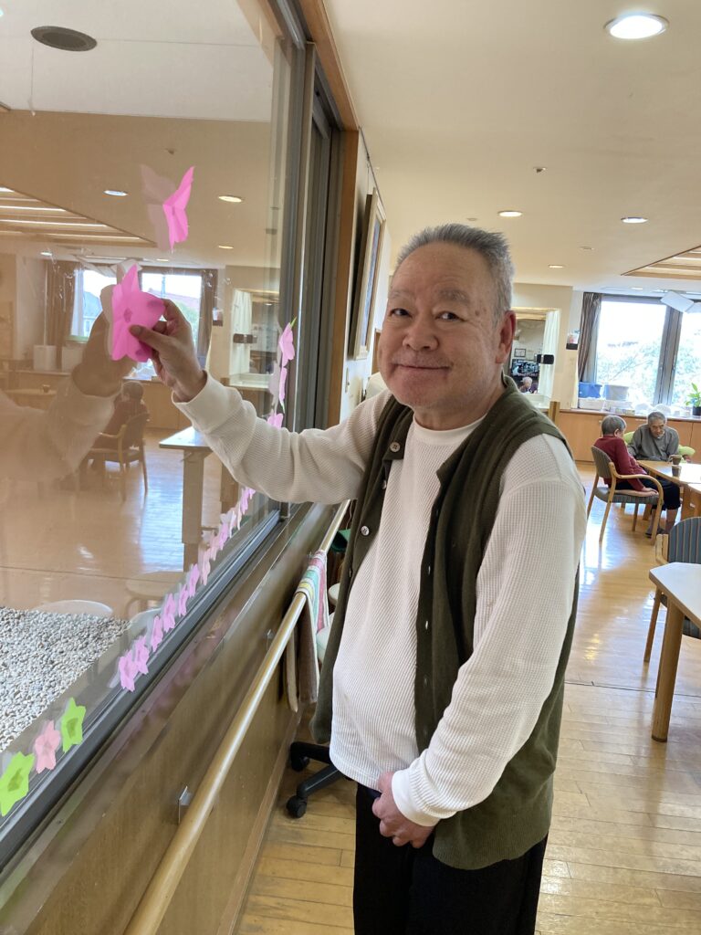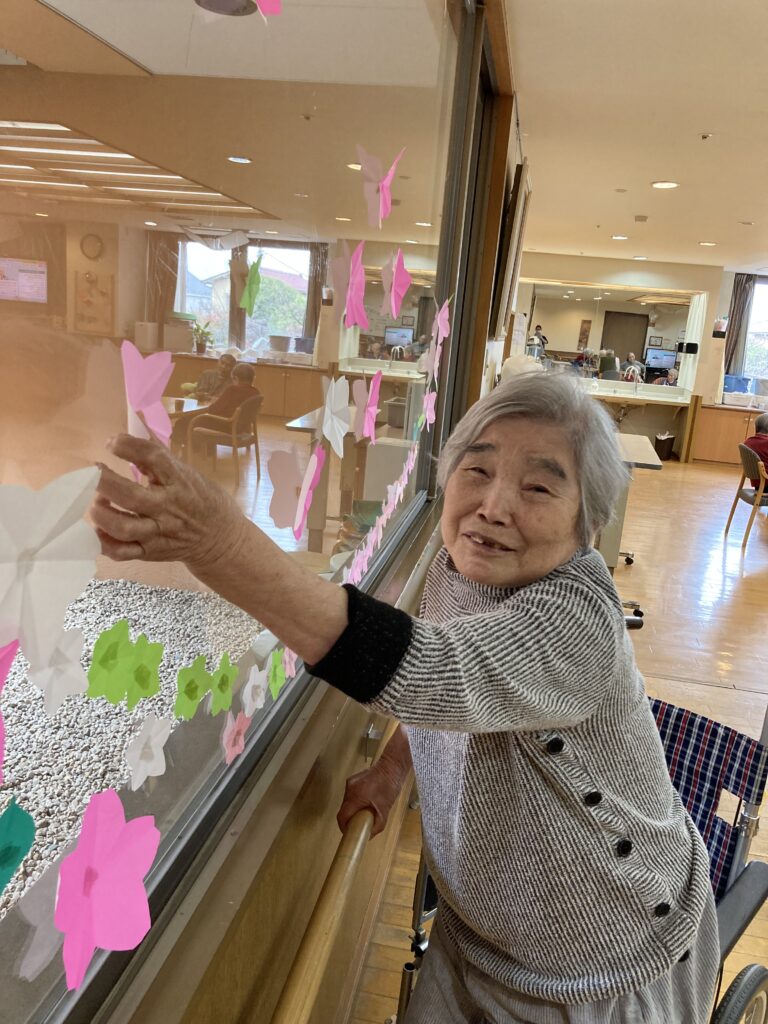 開花する前にも室内で季節を感じられるようご利用者様と一緒に飾りつけを行いました!